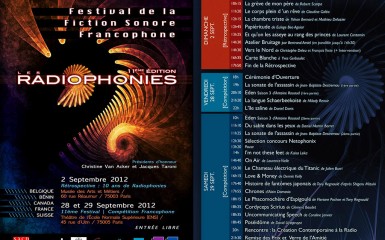 Festival unique en son genre, les Radiophonies francophones célèbrent leur 11ème anniversaire, les 2 septembre et les 28 et 29 septembre 2012. Dédié à la création de fictions radiophoniques, le ...